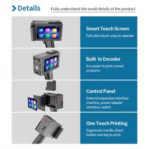 Handheld Inkjet Printer adalah solusi portabel untuk kebutuhan pencetakan seperti kode produksi, tanggal kedaluwarsa, barcode, atau logo pada berbagai jenis permukaan. Dengan desain ringan dan ergonomis, printer ini dilengkapi layar sentuh HD berukuran 5 inci yang mempermudah pengoperasian. Berikut adalah beberapa fitur dan spesifikasi utama dari mesin ini.
