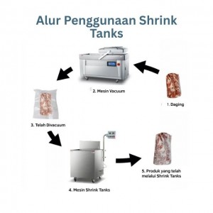 Mesin Hot Water Dip Shrink Machine dirancang untuk menyusutkan plastik shrink wrap pada kemasan yang sudah di-vakum menggunakan air panas. Proses ini memastikan plastik menciut dan melekat sempurna pada produk, meningkatkan tampilan dan menjaga kesegaran lebih lama. Mesin ini ideal untuk industri pengolahan makanan, terutama daging, sosis, keju, dan makanan beku.