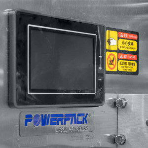 Dilengkapi panel kontrol digital untuk pengaturan suhu sealing, panjang kemasan, dan kecepatan secara otomatis.